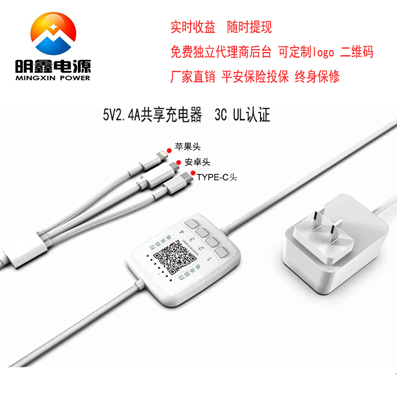 共享充電器,共享充電線,共享充電器價格,共享充電器廠家明鑫電源共享充電器 5V2.4A
