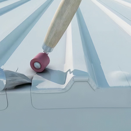 海美防水瓦以鋼板為基板,表面貼覆具有防水防腐功能的TPO/PVC卷材(熱塑性聚烯烴類防水卷材),是海美金屬推出的新一代防水防腐屋面建筑材料。海美防水瓦主要特點就是在各類環境下不易生銹不易漏水,使用熱風焊接進行相連,覆蓋全部裸露的縫隙,在使用過程中可以達到蓄水不滲透的效果,防水效果好,同時還有較好的抗風揭性能和耐老化性能,為鋼結構建筑屋面提供了長久的防護。