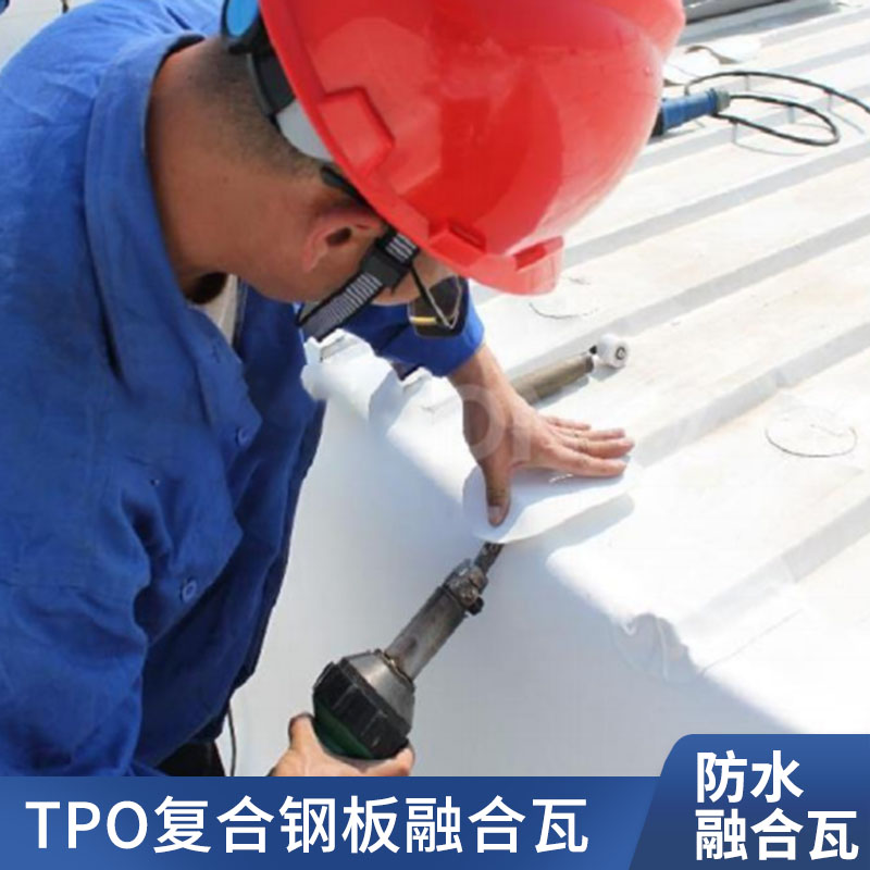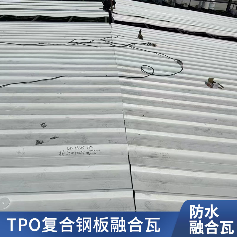 TPO/PVC鋼塑復合防水瓦以鋼板為基板,表面貼覆具有防水防腐功能的TPO/PVC卷材(熱塑性聚烯烴類防水卷材),是一款防水防腐屋面建筑材料。TPO/PVC鋼塑復合防水瓦主要特點就是在各類環(huán)境下不易生銹不易漏水,使用熱風焊接進行相連,覆蓋全部裸露的縫隙,在使用過程中可以達到蓄水不滲透的效果,防水效果好,同時還有較好的抗風揭性能和耐老化性