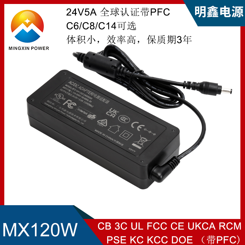 MX120W系列電源適配器帶PFC 全球認(rèn)證